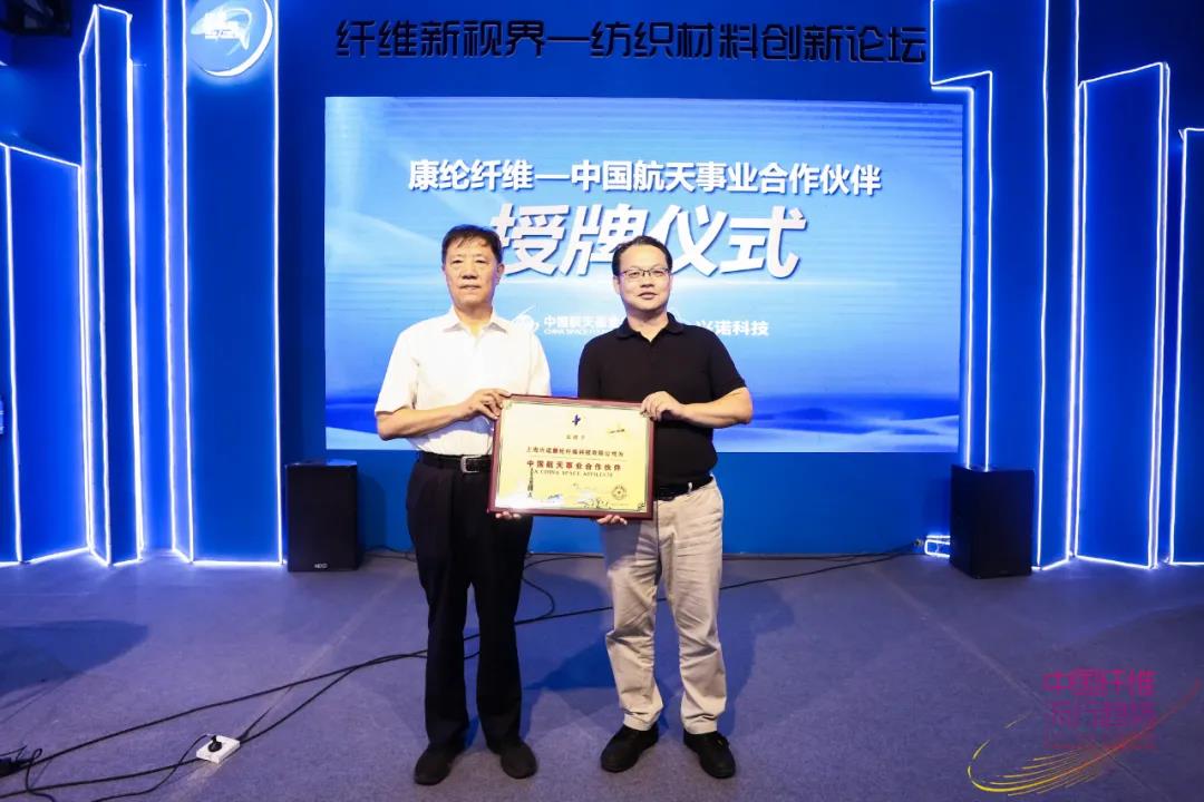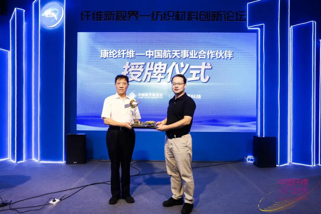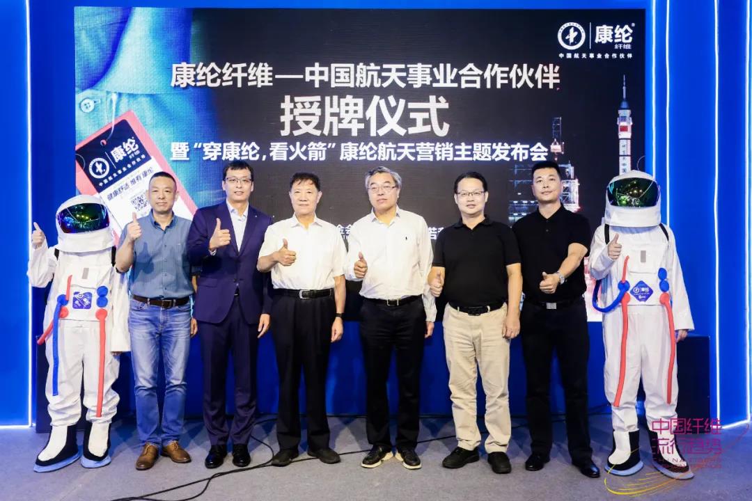 10月10日,在2021中國國際紡織紗線(秋冬)展覽會期間,由上海興諾康綸纖維科技股份有限公司(以下簡稱“興諾康綸”)主辦,中國化學纖維工業協會、中國航天基金會支持的“康綸纖維——中國航天事業合作伙伴”授牌儀式暨“穿康綸,看火箭”康綸纖維航天營銷主題發布會在國家會展中心8.2號館成功舉辦。