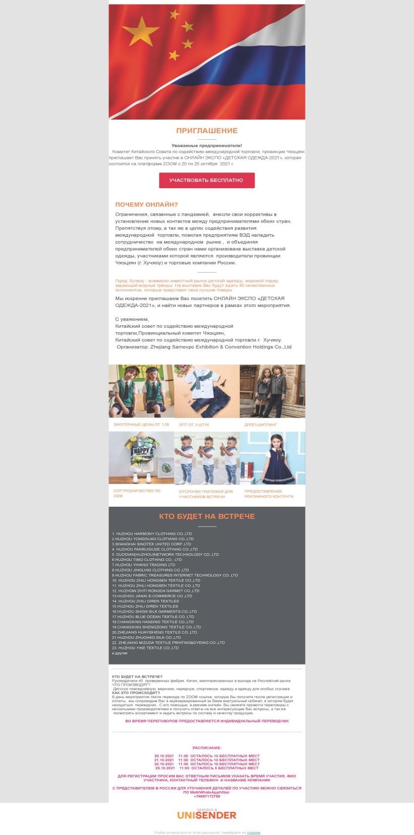 由浙江省貿(mào)促會(huì)主辦,湖州市貿(mào)促會(huì)、吳興區(qū)商務(wù)局共同協(xié)辦,浙江三博會(huì)展股份有限公司承辦的“2021浙江名品童裝(湖州-俄羅斯)線上展覽會(huì)”于2021年10月24日?qǐng)A滿落下帷幕!
