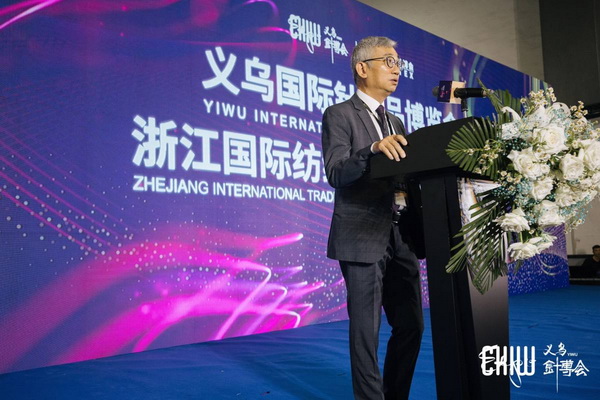 浙江國際紡織服裝產業博覽會在義烏國際博覽中心同期舉辦,雅式展覽服務有限公司總經理鐘致賢上臺致辭,他表示后疫情時代加速了紡織供應鏈全新升級,雅式與針博會將攜手共進,繼續為義烏針織產業賦能。