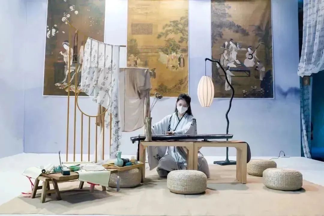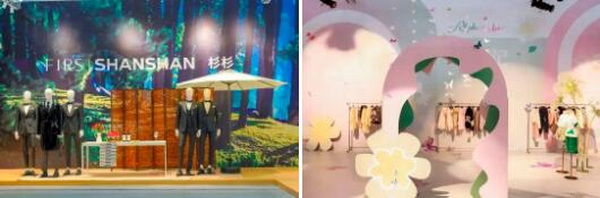 紅傳服飾則圍繞場景化成衣品牌choice-yin,以復古與時尚相結合的方式裝修整個展位,用宋韻美學風格呈現表達華夏服飾文化特色。一塊布料詮釋紅傳“匠心”傳承,代表高風亮節的竹子展示格物致知的場景展示,二者與紅傳服飾的陳列巧妙融合,幻化成人世間唯美的衣禮符號——良知·衣禮。