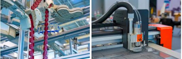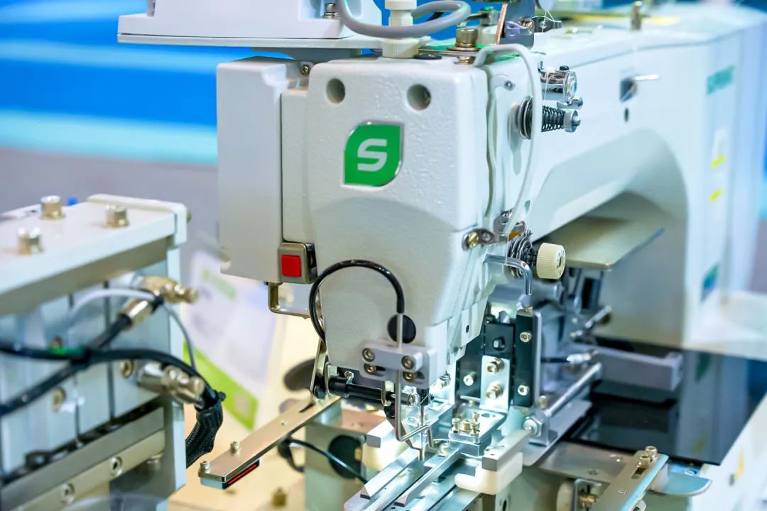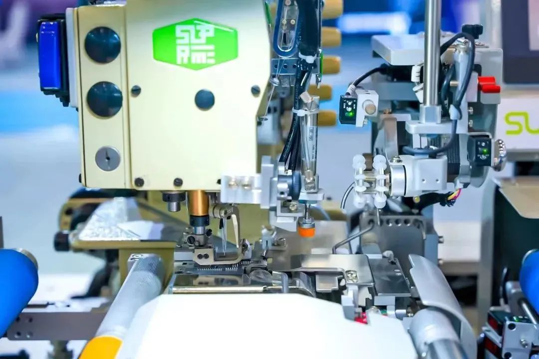 在智能化生產方面,國家級單項冠軍舒普科技可謂是當仁不讓的佼佼者。今年時尚節,他們依舊搬出了“大殺器”——智能制版機,其最大的特點是可以自動打出圓形弧度的線條。展位工作人員介紹,通常制版機都是在縱橫兩個坐標軸上移動,當要畫弧線時就需要人工干預。但舒普的機器真正實現了全自動制版,只要將CAD設計圖紙輸入嵌入式軟件,無論是小半徑圓弧還是高精度圖案,機械臂都能帶動走針一氣呵成。同時,這臺設備還附加大量現成模版,不同款式一鍵制版成衣,連外行都能輕易上手。再比如能自動編輯程序的橡皮筋縫合機,能一次操作完成5件衣服熱感標簽的5工位燙標機……