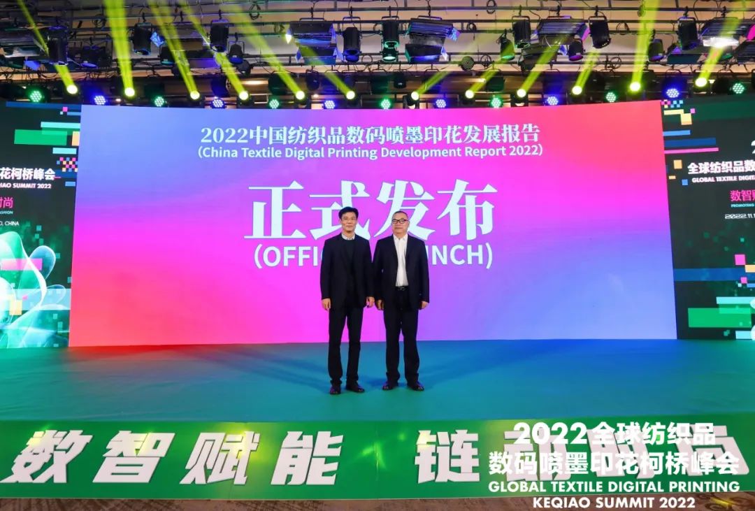 11月17日,由中國印染行業協會、紹興市柯橋區人民政府共同主辦,紹興市柯橋區中國輕紡城建設管理委員會承辦的2022全球紡織品數碼噴墨印花柯橋峰會在柯橋召開。會上,《2022中國紡織品數碼噴墨印花發展報告》正式發布。