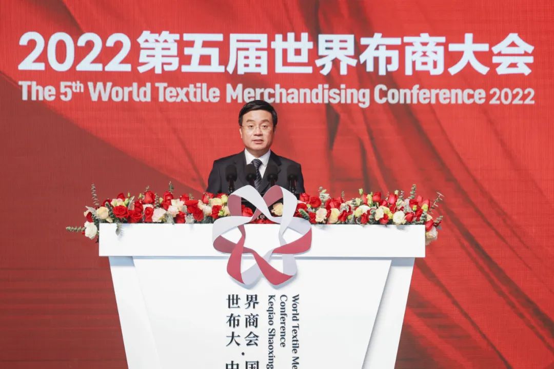 浙江省人民政府副省長盧山,中國僑聯(lián)副主席、浙江省政協(xié)副主席吳晶,國際紡織制造商聯(lián)合會、中國紡織工業(yè)聯(lián)合會會長孫瑞哲,商務部市場建設司司長周強,新華每日電訊總編輯方立新,工業(yè)和信息化部消費品工業(yè)司一級巡視員曹學軍,中國紡織品進出口商會會長曹甲昌,中國商業(yè)聯(lián)合會監(jiān)事長周京英,紹興市委副書記、市長施惠芳,紹興市委常委、副市長王濤,中國工程院院士、浙江理工大學校長、黨委副書記陳文興,中國科學院院士、中國科技大學教授俞書宏,中國科學院院士、東華大學教授朱美芳,中國工程院院士、浙江大學教授譚建榮,北京大學國家發(fā)展研究院經濟學教授、原任院長周其仁等領導嘉賓出席主題大會。