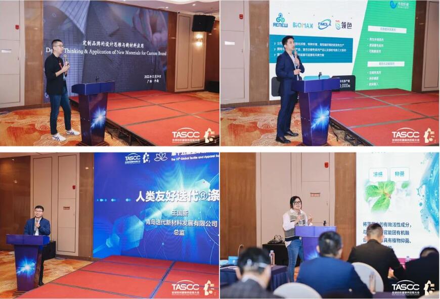 在“紡織服裝新材料供應鏈聯盟會議”中,青島酷特智能股份有限公司紅領品牌設計總監年春橋提出了定制品牌的設計思維趨勢、采買邏輯、新材料應用方向。江蘇垶恒復合材料有限公司總經理喬智介紹了綠色纖維的創新與應用。青島迭代新材料發展有限公司董事長王遵元介紹了迭代滌綸實現的四大優化。青島邦特生態紡織科技有限公司銷售總監宋曉彤則介紹了自主研發的Naturefi系列產品。