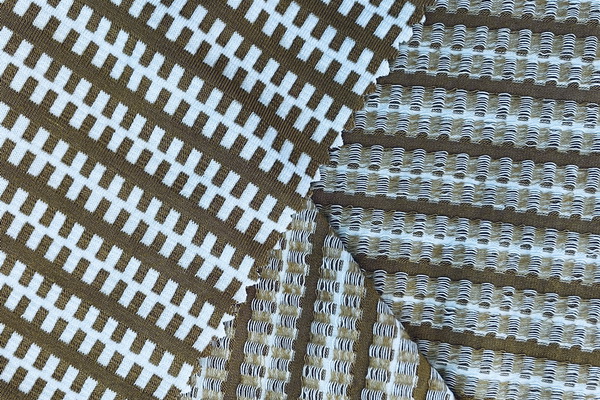 秀拉針織的色織提花羅馬布,別具一格,“人字斜”面料是都市商務休閑裝的必選,成衣既有梭織面料的感覺,又兼有針織面料的彈性。其他色織提花羅馬布,也是各有風格。