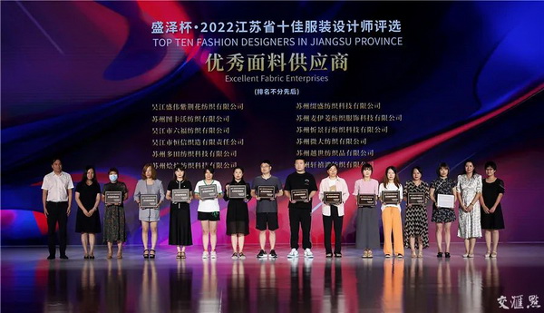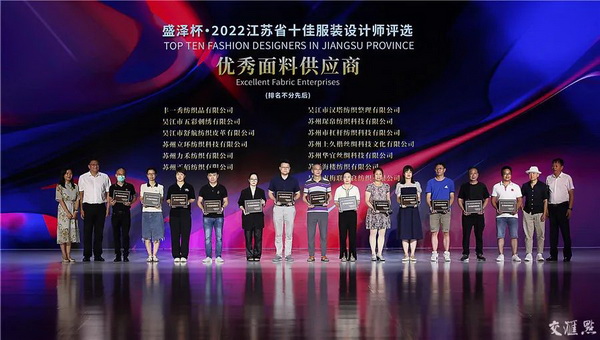 評選組委會決定授予吳江盛偉紫荊花紡織有限公司等25家企業榮獲“盛澤杯•2022江蘇省十佳服裝設計師評選”優秀面料供應商。