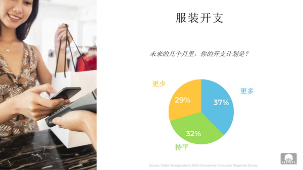 “超過三分之一的消費者表示計劃在未來幾個月內增加在服裝上的支出。但是,如果疫情繼續導致停工或通貨膨脹導致基本物品的價格上漲,這意味著消費者不得不減少花在衣服上的錢,那么服裝消費可能會出現一些放緩。”張立綱指出。