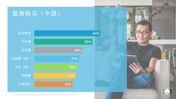 “展望未來,預計2022年中國服裝市場的增長率將接近7%。未來五年,服裝總支出預計將增長37%,達到約4600億美元。”張立綱補充道,此外受疫情影響,消費者計劃購買的服裝類型依然以休閑裝和運動裝為主。