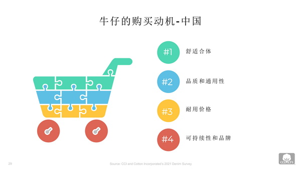 “舒適度和合身度是中國消費者購買牛仔褲最大的動機,其次是質量與多功能性。”張立綱表示,超過三分之二的中國消費者在購買牛仔褲時認為合身非常重要。當找到適合的款式時,超過五分之四的人愿意為牛仔褲支付更多費用。