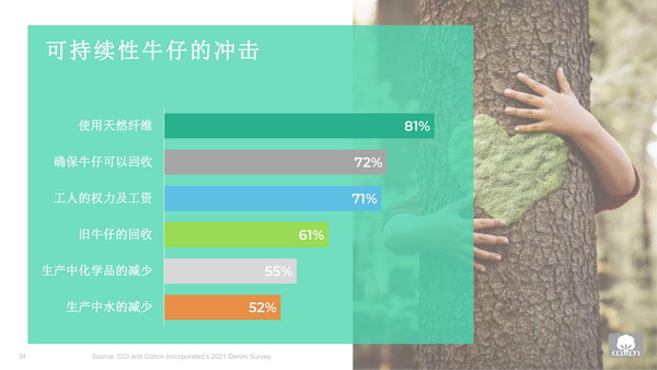 “隨著消費者的環保意識越來越強,購買更具可持續性的牛仔對消費者來說越來越重要。”張立綱強調道,牛仔使用天然纖維、可回收性、工人的權利工資、生產過程中化學品與水的減少等因素都將影響消費者購買牛仔褲。