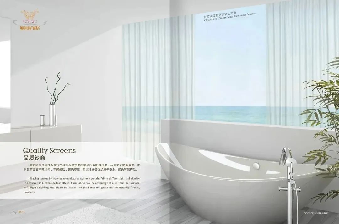 自1998年創立開始,如意屋已成為一家集織造、染整、印花、縫制、進出口貿易及環境科技于一體的大型紡織企業,多年來,如意屋一直是日本、歐、美等國大型知名品牌的長期供應商。其出口的窗簾份額占據日本市場總份額的百分之6.8。此外,如意屋公司一直致力于阻燃遮光面料的開發與運用, 先進的設備、完整的實驗室、創新的理念,人文化的管理更使其榮膺“國家阻燃功能性家居產品開發基地”的稱號。