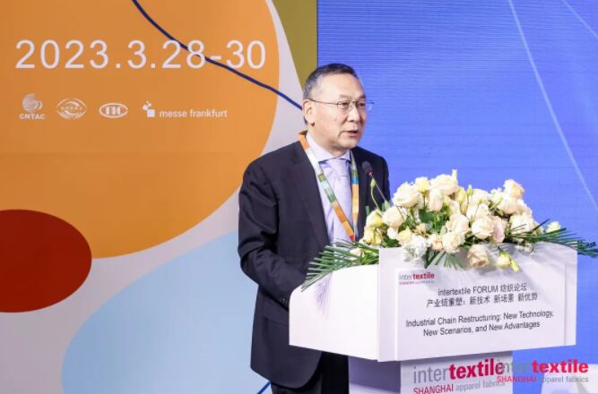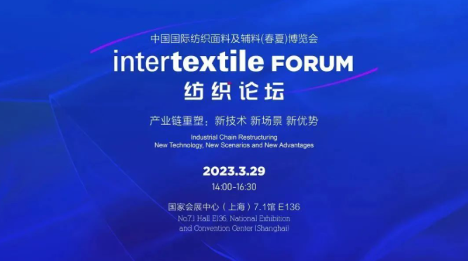 3月29日下午,由中國國際貿易促進委員會紡織行業分會、中國紡織信息中心、法蘭克福展覽(香港)有限公司主辦,北京盛世嘉年國際文化發展有限公司策劃承辦的2023 intertextile FORUM 紡織論壇在國家會展中心(上海)7.1-E136舉辦。本場論壇以“產業鏈重塑:新技術 新場景 新優勢”為主題,助力產業創造國際競爭新優勢,實現高質量發展。