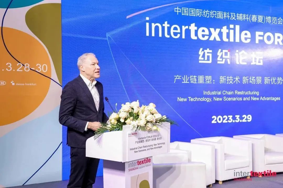 法蘭克福展覽有限公司紡織品及紡織技術展副總裁 Olaf Schmidt在開場致辭中表示,本次紡織五展聯動,上下游參與者齊聚一堂,互通有無,分享能夠推動行業發展的創新想法。在這方面,intertextile FORUM紡織論壇可謂最具代表性。面對目前復雜多變的商業環境,整個紡織行業不得不去適應不可預見的變化。在這樣的背景下,紡織行業必須抓住機遇,重塑價值鏈,打造全球和區域新優勢。