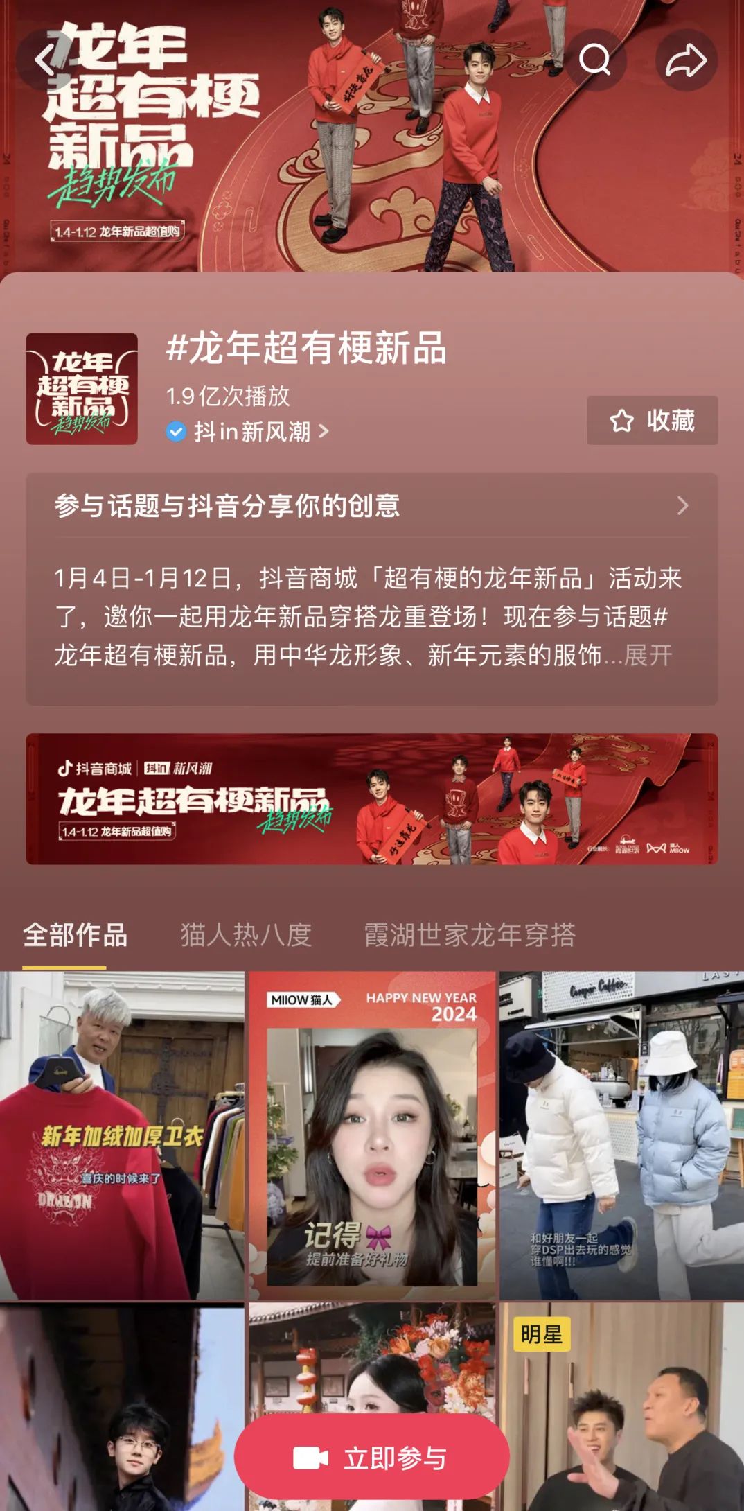 近期抖音電商大服飾行業活動抖in新風潮,在龍年到來之際攜手明星達人和頭部品牌,發起「龍年超有梗新品趨勢發布」活動,構建營銷新場景,為眾人帶來有關龍年穿搭、龍年單品的分享,對于消費者龍年穿搭造型的借鑒、以及龍年穿搭單品的選擇有著極高的參考價值,推動著潮流趨勢與參與品牌的發展。