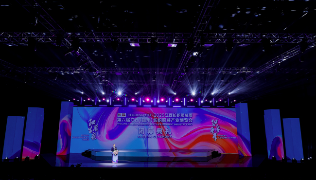 11月26日,為期3天的2025江西紡織服裝周暨第六屆江西(贛州)紡織服裝產業博覽會圓滿落下帷幕。省工信廳副廳長江紹龍,贛州市副市長鄒治宇出席閉幕式并致辭。省工信廳紡織工業處處長潛九慶,江西服裝學院副院長賈麗霞,市市場監管局局長黃蕙,縣委副書記、縣長李松柏,縣領導羅高波、賴曉強等出席活動。縣委常委、副縣長楊海峰致答謝詞。