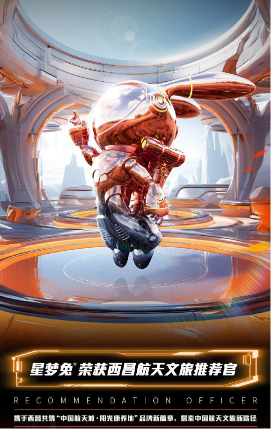 在消費品領域,中糧長城超然 super burning19 度X星夢兔聯名新品發布,一起舉杯,為夢想干杯。與“中國航天城”西昌強強聯合,開啟航天+文旅的全新篇章,2025 年 5 月西昌市文化廣播電視和旅游局正式授予守護九天的角色“星夢兔”成為了“西昌航天文旅推薦官”。