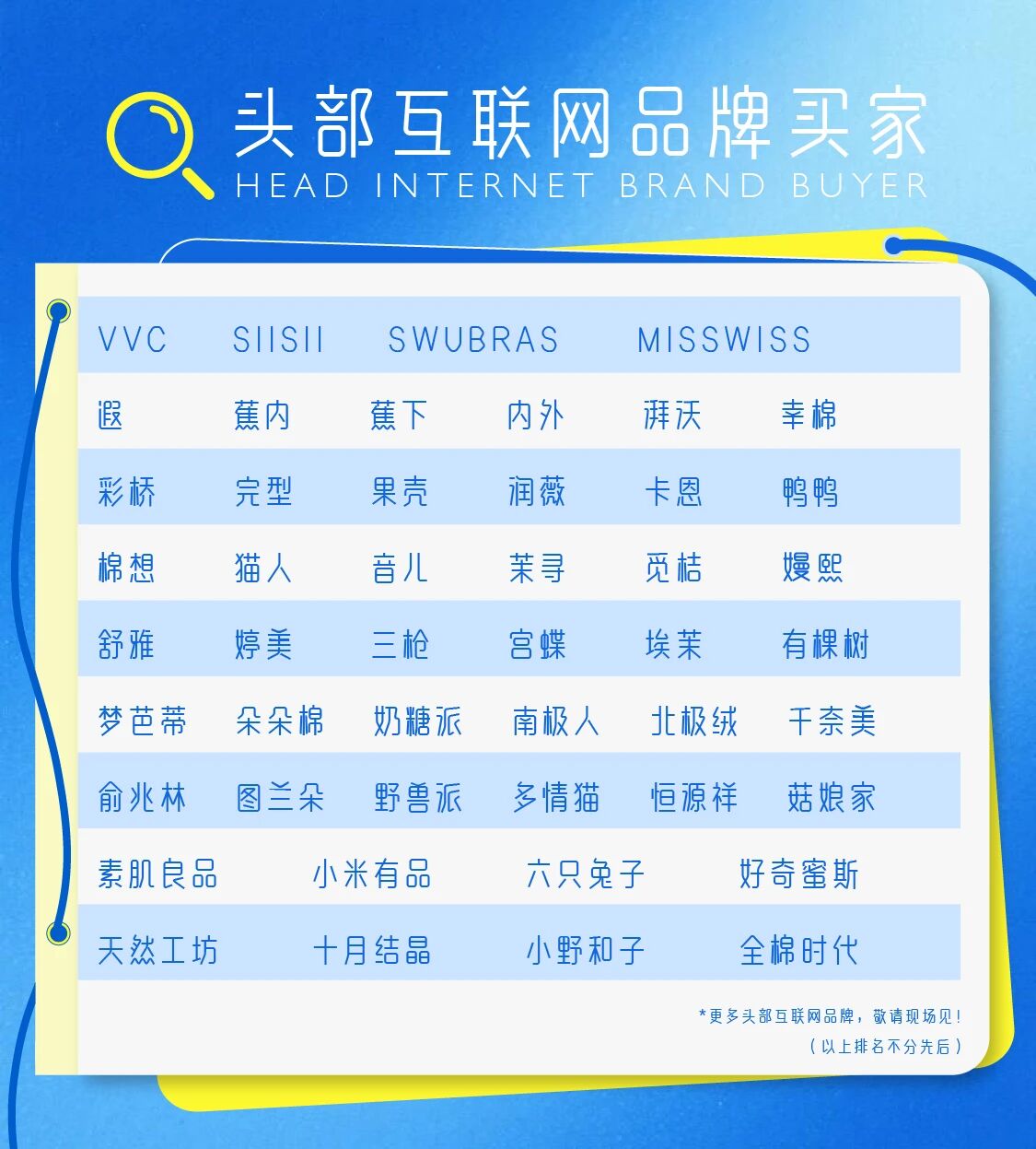集結蕉內、蕉下、內外、幸棉等「頭部互聯網品牌買家」,作為互聯網市場增長驅動力,為展商提供規模化爆發與精準用戶觸達的黃金通道。