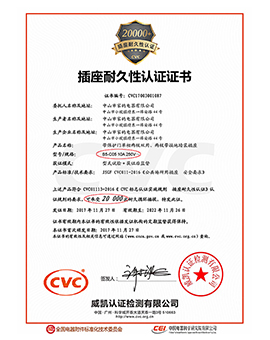 V8-B5插座耐久性認(rèn)證證書