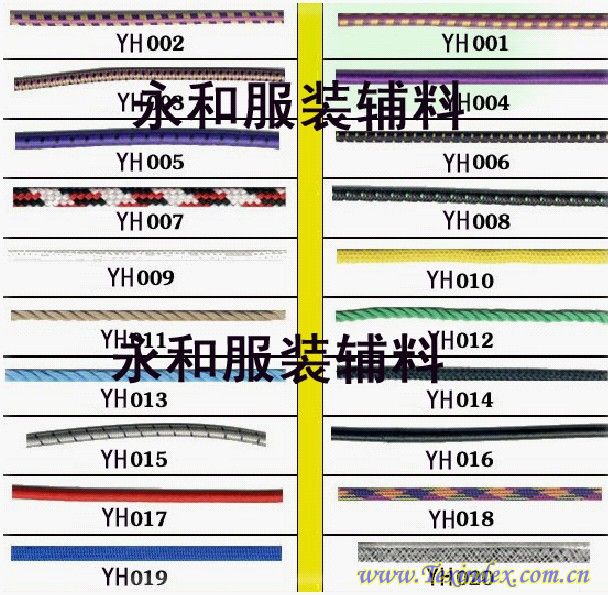 主營產(chǎn)品: 繩類:棉繩,PP繩,POLY繩,鞋繩,扁繩,蠟繩,針通繩,橡筋繩,手機繩,帶類:棉帶,腰帶,人字帶,滌綸帶,三色帶,平紋帶,珠帆帶,松緊帶,通芯帶,子母帶,印花帶,提花帶
