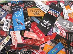 主營產品: 布標印嘜,吊牌及服裝吊粒,織嘜織標,不干膠貼紙,高周波電壓章及皮牌,繡花章,熱轉印,RFID,硅膠章及PVC章,羽絨包,絲印嘜及絲印加工