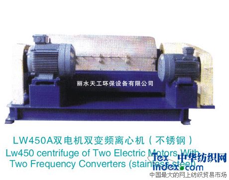 麗水天工環保設備有限公司二十年專業生產臥螺離心機、臥螺式沉降離心脫水機、污泥破碎機、板框壓濾機;紙漿廢液回收裝置。 公司主導產品(碳鋼類和不銹鋼類LW350、LW450、LW550等)三錐角BD板臥螺離心機、絮凝劑配投裝置、污泥切割機、無軸螺旋輸送機、板框壓濾機等,可對混合液中粒徑幾微米至三毫米的固體顆粒進行濃縮、脫水、分級分離;是污泥脫水、固液分離的理想設備;紙漿廢液回收裝置可提高紙漿利用率10%左右。 產品廣泛應用于造紙、印染、洗滌、化工、制革、制藥、釀造、酒糟、水晶、礦山、泥漿、鉆井、鋼鐵、煤塵、電鍍、木業、玉米渣、屠宰、人蓄糞類等工業污水及市政污水的處理,在果汁、大豆蛋白的分離、濃縮,土豆、木薯、小麥淀粉、農產品的凈加工,以及高嶺土、石墨、硅藻土、鈦白粉的分級、甲基纖維素的脫液濃縮等工藝處理方面也有積極的應用。使用單位有黑龍江青岡玉米制品有限公司、吉林輝發紙業、清華大學永新環保股份、河北三利集團、石家莊淀粉公司、新鄉宏達紙業、山東東明石化、東阿阿膠集團、風陽陽谷集團、常熟江南洗毛廠、恒源祥集團、上海申一毛滌廠、浙江新安江污水處理廠、新和成醫藥股份、浙江華都印染股份、紹興印染股份、福建玄武石材公司等等,產品遍布全國。