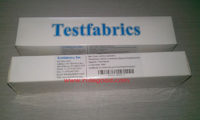用途:AATCC標準摩擦布,專用于干、濕摩擦脫色試驗機,配合AATCC灰色標評定其試樣色牢度等級。