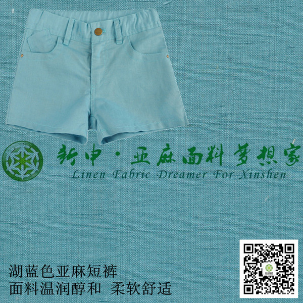 湖藍色亞麻短褲春夏休閑褲童裝女童短褲面料