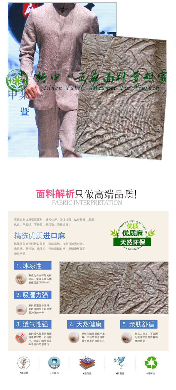 關鍵字:亞麻面料,時尚大氣,原創設計,潮流趨勢,舒適抑菌