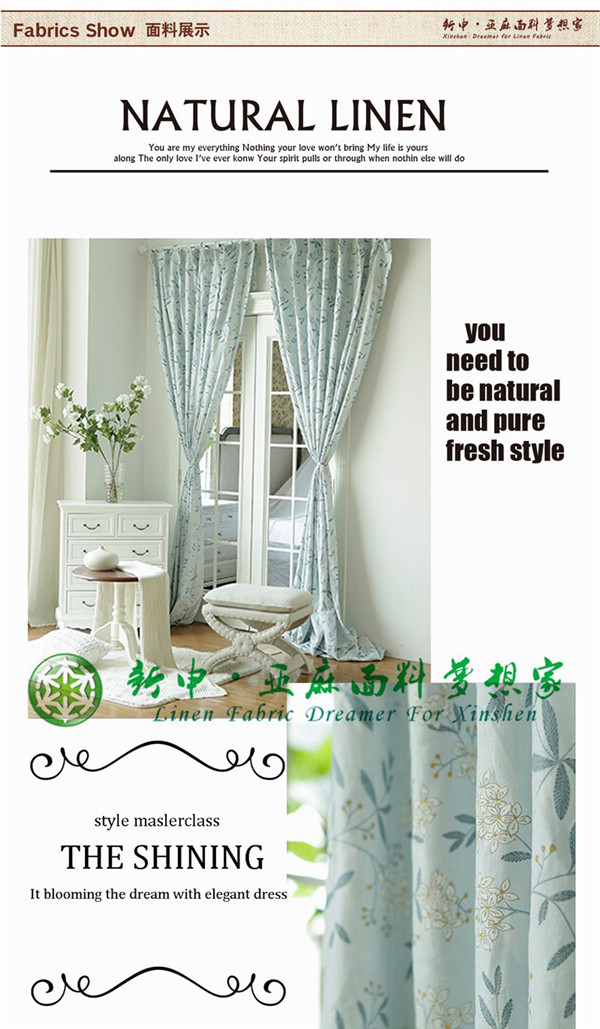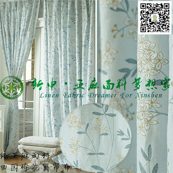 100%純亞麻韓式田園鄉村風碎花窗簾面料