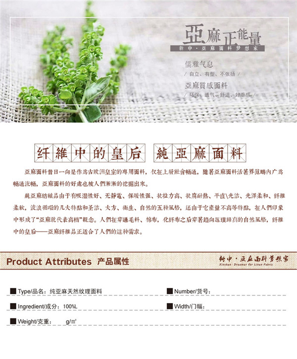 關(guān)鍵字:亞麻面料,簡約時(shí)尚,高檔優(yōu)質(zhì),寬松休閑,自然親膚