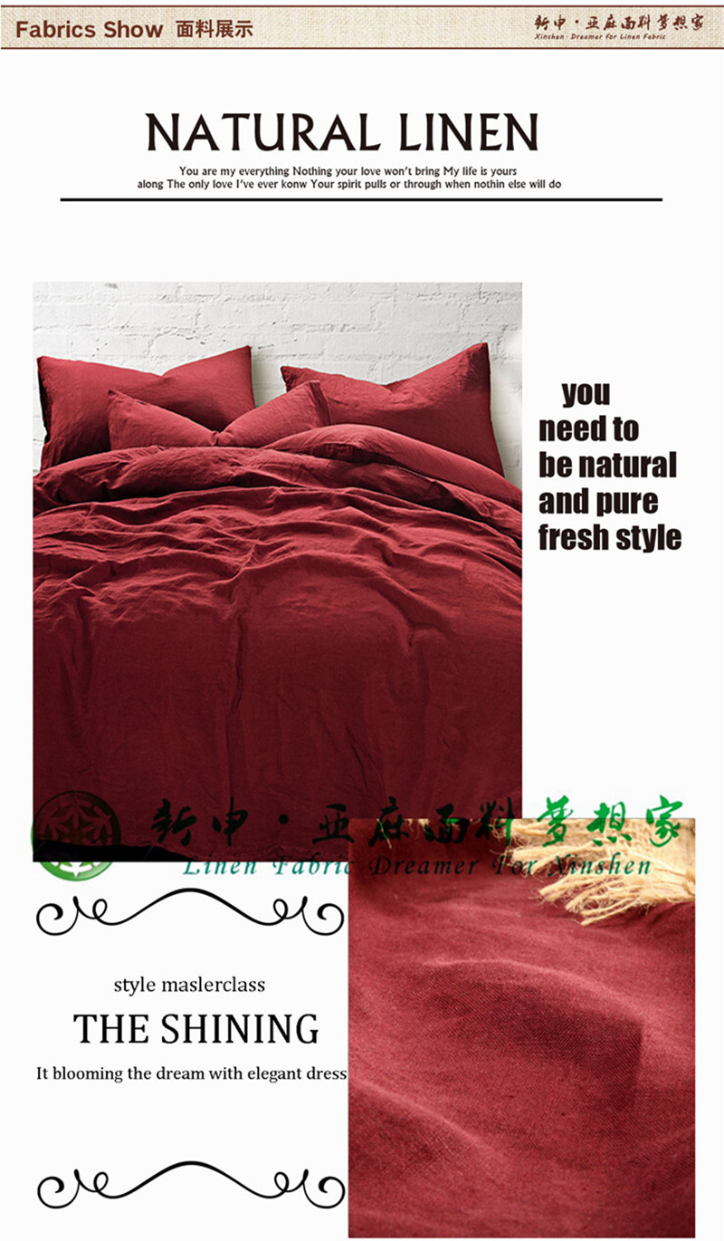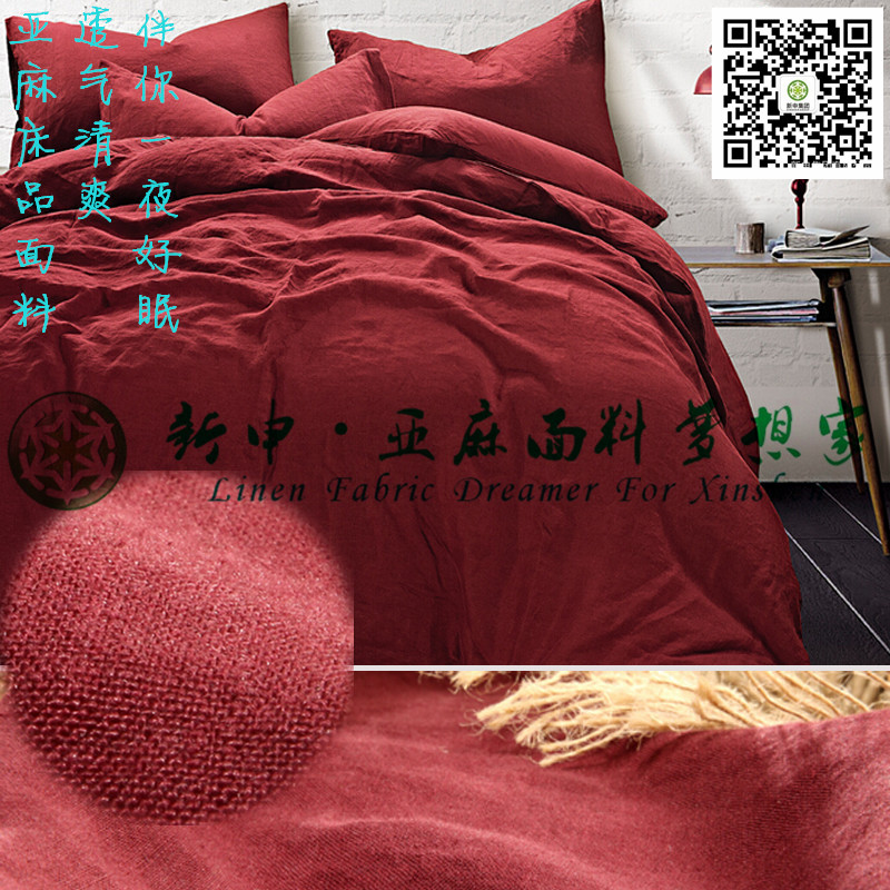 高檔優質純亞麻酒紅色床品四件套布藝面料