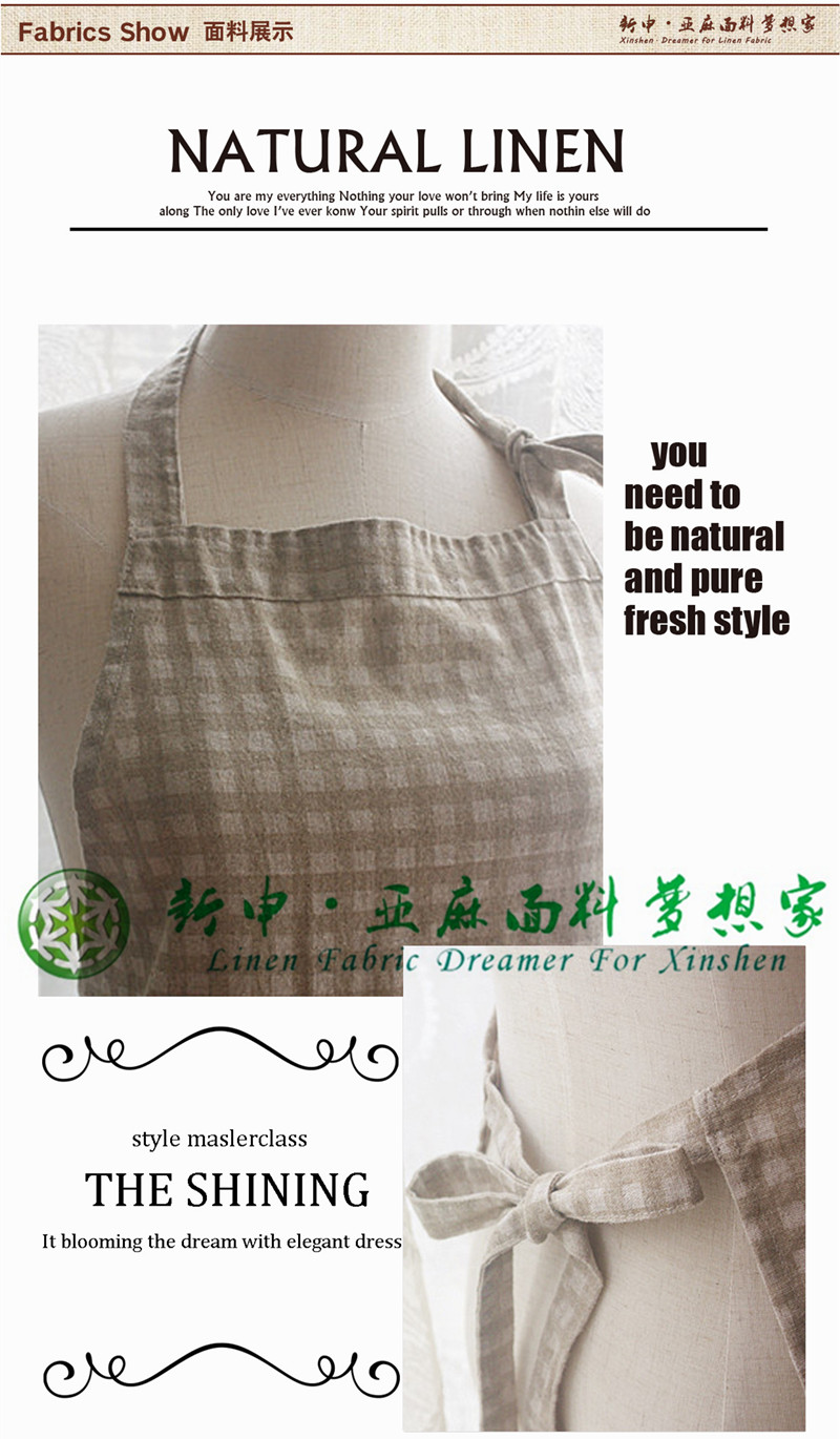 日式簡約格子條紋亞麻水洗工藝圍裙面料