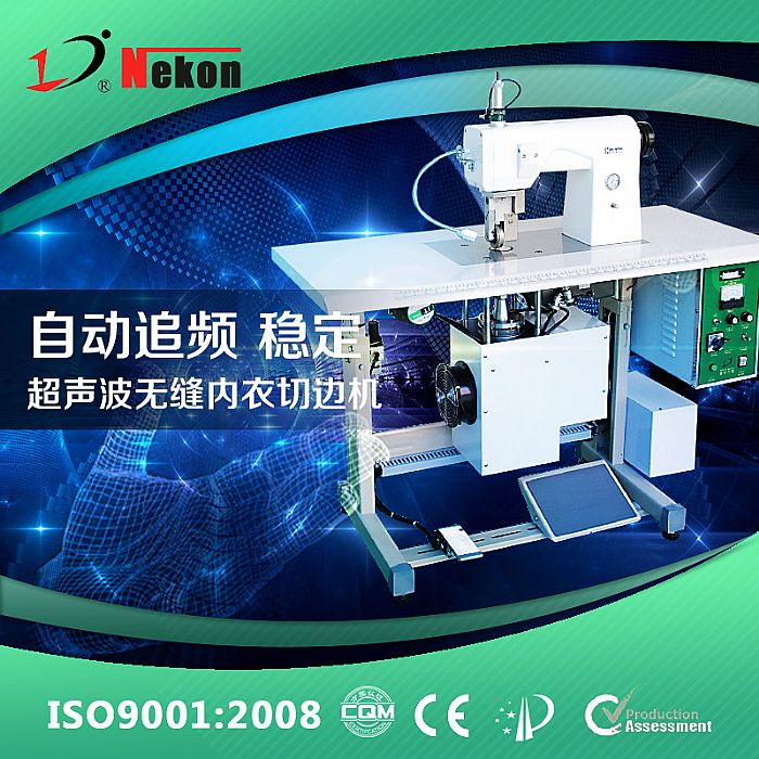 超聲波內衣機是將超聲波技術成功的運用在內衣產品上,通過特制花輪對內衣的周邊進行蕾絲切邊,壓各式暗紋,或壓各式花孔,并能對邊緣