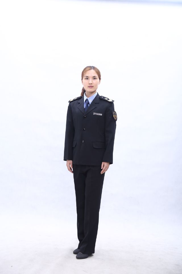 食品藥品監(jiān)督夏服:襯衫為滌棉混紡面料。短袖襯衫為小翻領(lǐng),單排四粒扣,兩個明口袋。長袖襯衫為豎領(lǐng),單排五粒扣,兩個明口袋;西服簡褲或裙子為毛滌混紡面料。