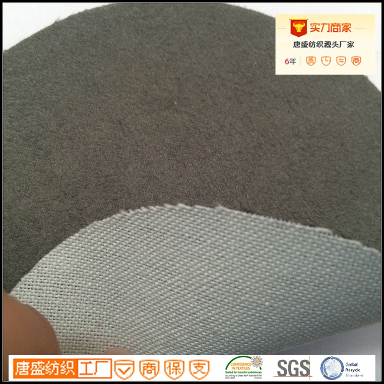 緯向麂皮絨:緞紋組織,經線用再生滌綸絲,緯線用海島絲