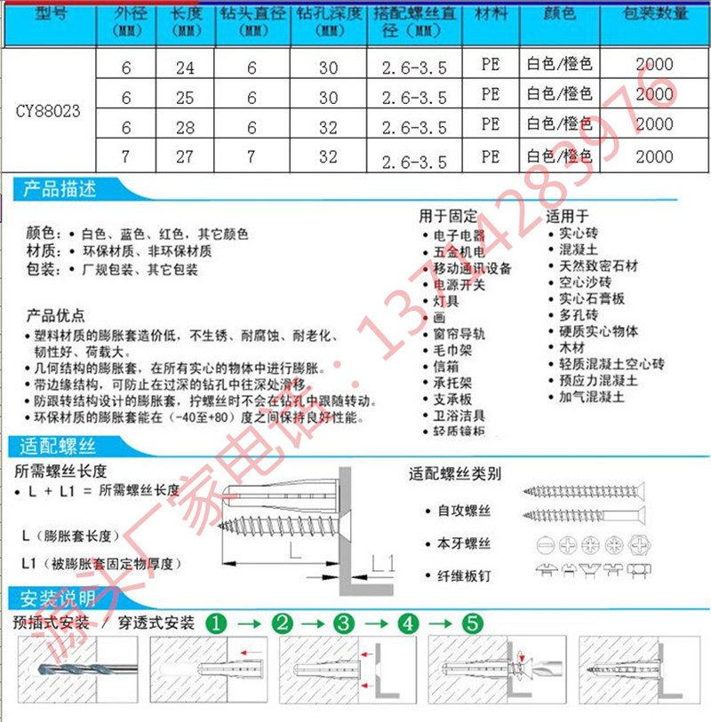 本公司生產銷售各類塑料膨脹管,塑料膨脹螺絲,塑膠膨脹螺栓,塑料膨脹膠塞,塑料壁虎,塑料膨脹螺絲,塑膠膨脹管,塑膠錨栓,塑料錨栓,