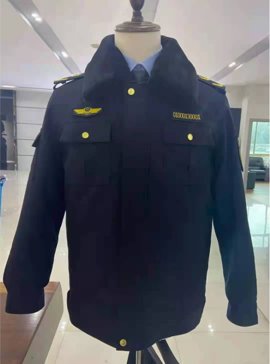 服裝的顏色為藏青色及天空藍色,搭配金色標志。服裝功能主要考慮適應城市管理工作場所多在戶外、街頭的實際,便于執勤活動