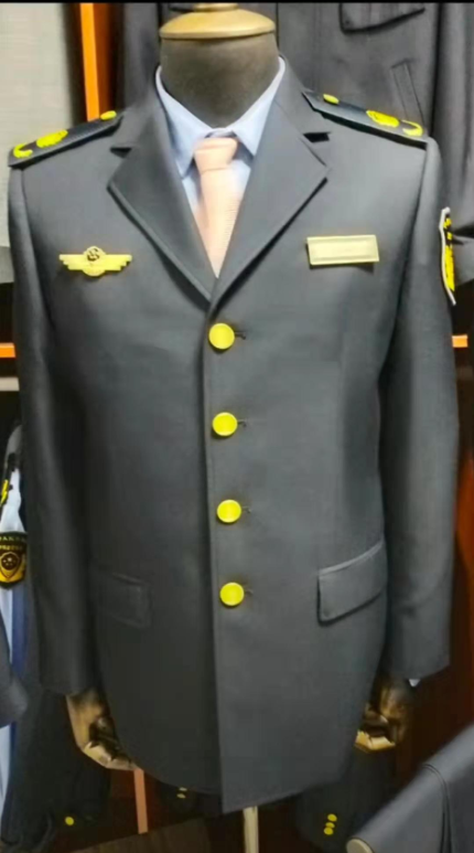 春秋服)修身款式設計剪裁,穿著威武、帥氣、大方。較小的領型設計,更適合南方人的體型,袖口處有四料專用金屬扣,可佩戴武裝腰帶,男裝前胸設計大貼袋子,女士收腰公主線,適合春秋季執勤和行政人員穿著