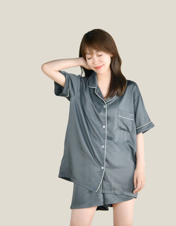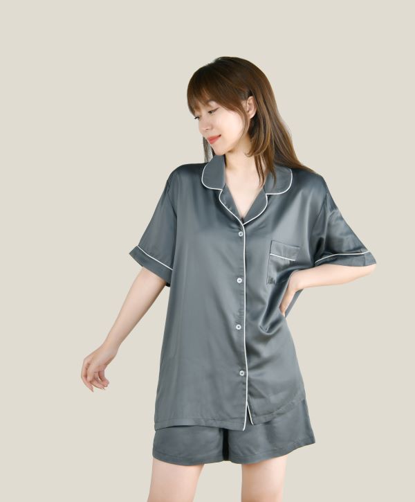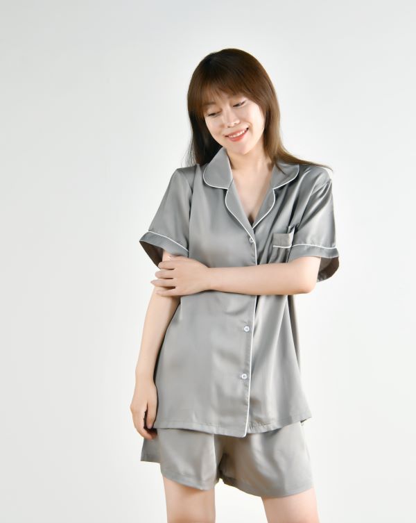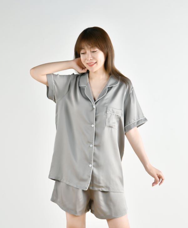 簡約舒適的彈力天絲,順滑垂墜,親膚透氣,睡覺穿沒有任何束縛感,出門穿簡約大氣的家居服飾。