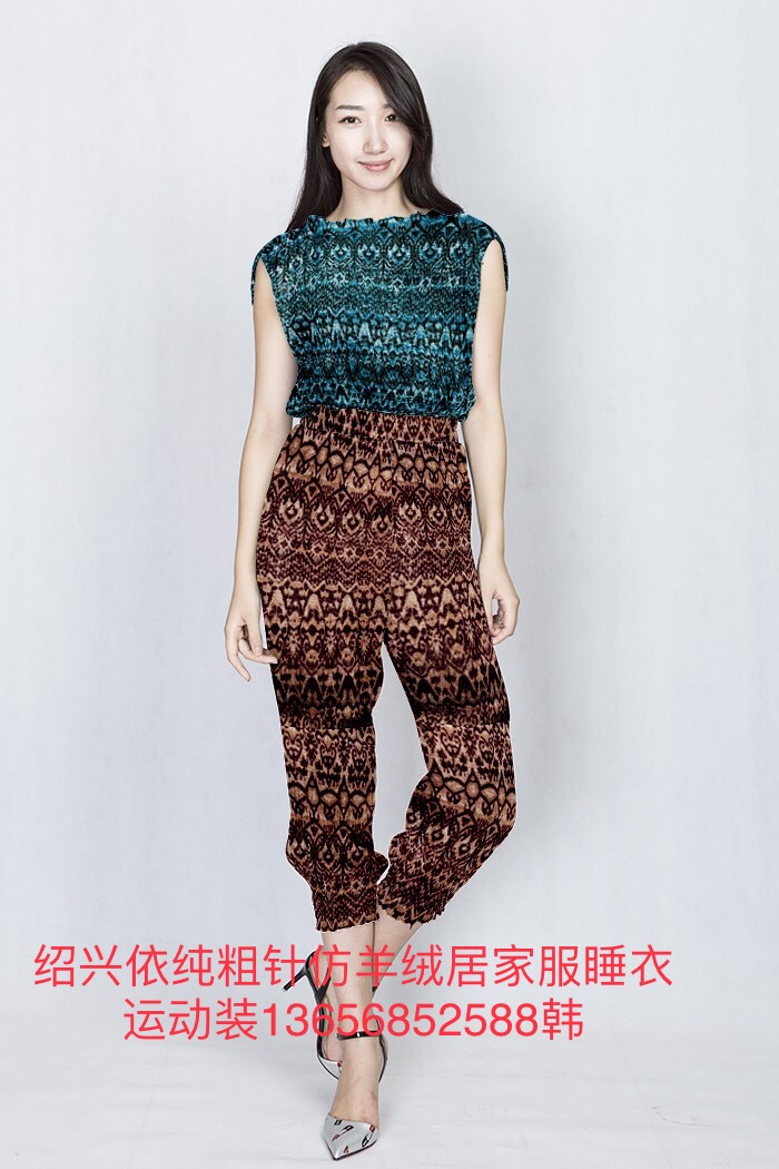 法蘭絨拉毛拉架印花仿羊絨居家服面料