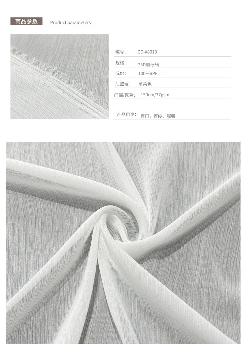 75D順紆縐再生雪紡面料頭飾連衣裙面料