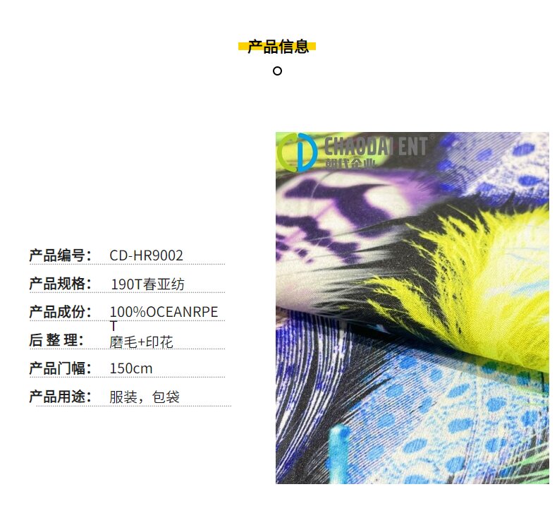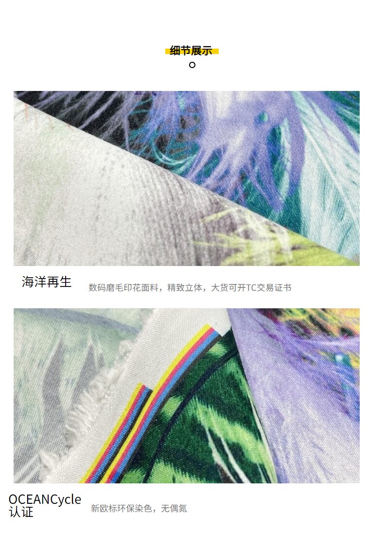 關鍵字:海洋再生面料,數碼印花面料,服裝面料,春亞紡面料