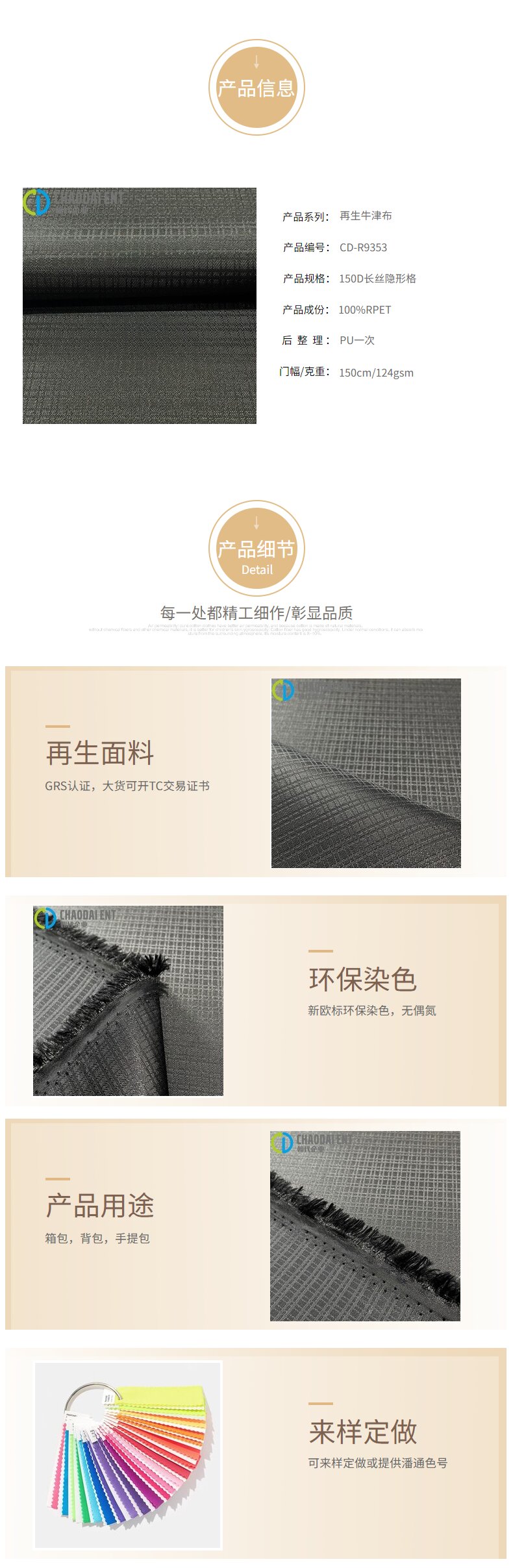關鍵字:再生面料,牛津布面料,箱包面料,手提包面料