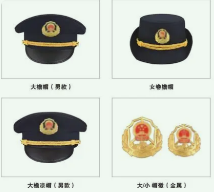配飾:市場監督管理局配飾由帽徽、肩章、金屬胸標、領花等組成。