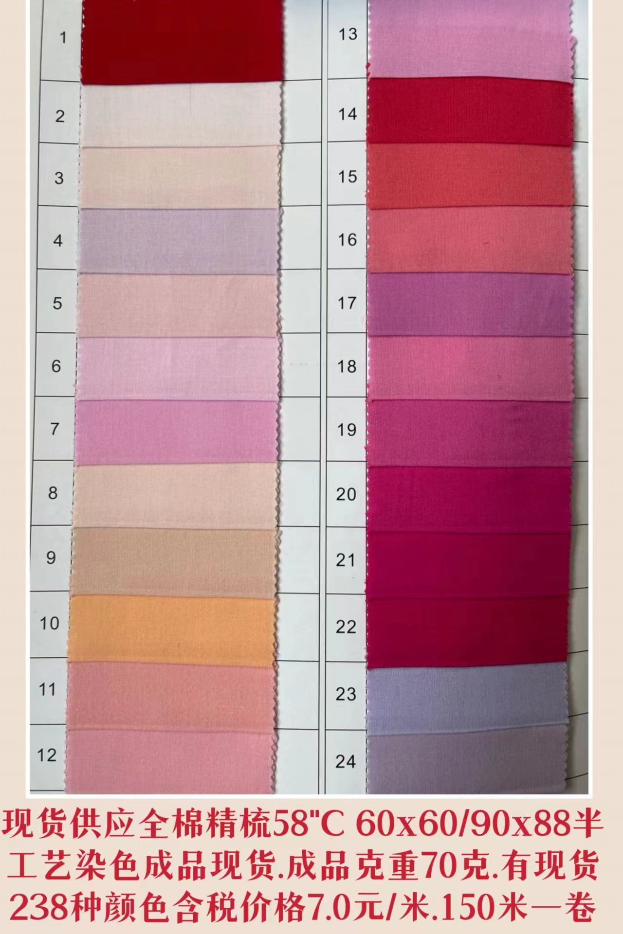 倉庫常年現貨供應60"JC60x60/90x88染色成品布有238種顏色細布,