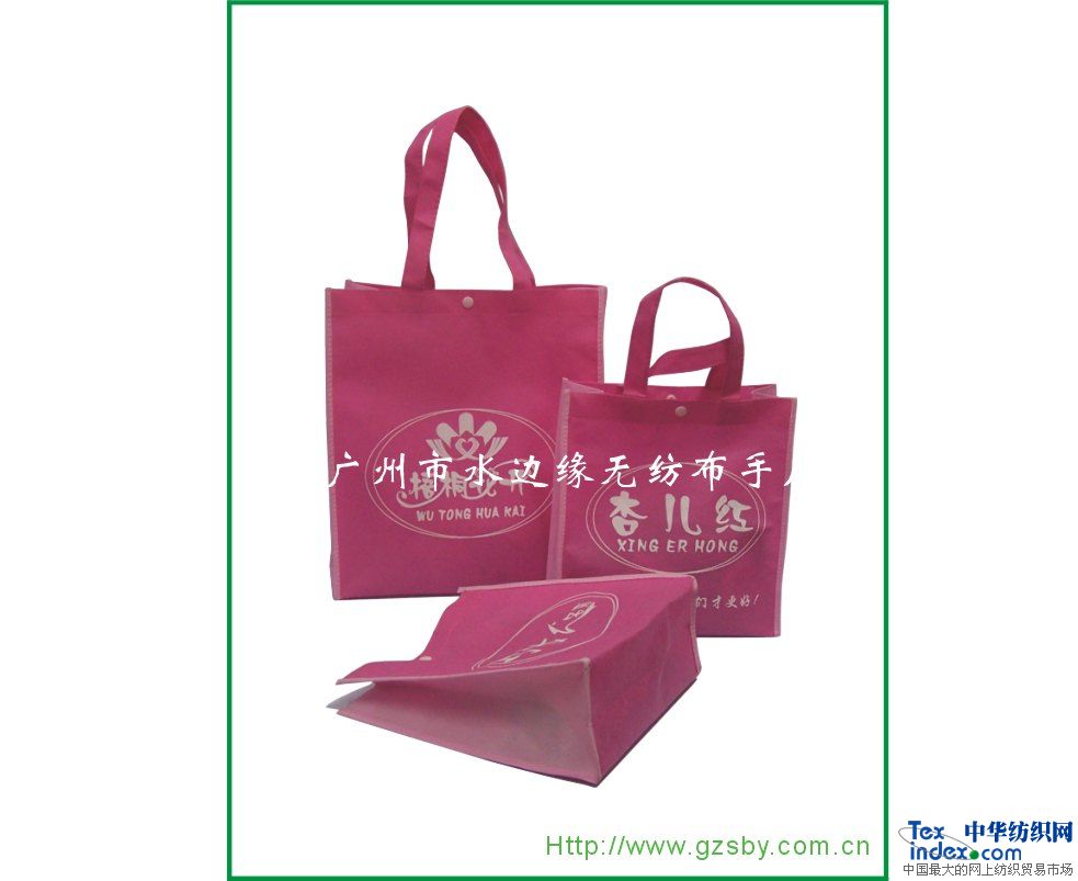 廣州市水邊緣無紡布手袋廠專業(yè)生產(chǎn)無紡布袋,超市購物袋,超市環(huán)保袋,無紡布腹膜袋,無紡布燙畫袋,純棉布袋,牛津布袋,里布袋,酒袋,不織布手袋,環(huán)保購物袋,無紡布贈品袋,無紡布儲物袋環(huán)保超市購物袋,環(huán)保禮品袋,不織布購物袋,不織布禮品袋,不織布手袋,不織布環(huán)保袋,不織布袋子,展會宣傳袋,植絨袋,西裝袋,婚紗套,涼席袋,枕頭袋,廣告袋,廣告圍裙,拉繩束口袋,拉繩鞋袋,無紡布收納盒,無紡布精品盒等無紡布制品。無紡布產(chǎn)品在兼顧外觀精美的基礎上還保證其實用性和廣告功能。是21世經(jīng)企業(yè)廣告、禮品產(chǎn)品包裝的最佳選擇。本工廠以價格合理質(zhì)量保證為經(jīng)營宗旨,歡迎國內(nèi)外客戶前來參觀指導,以及來樣訂做.