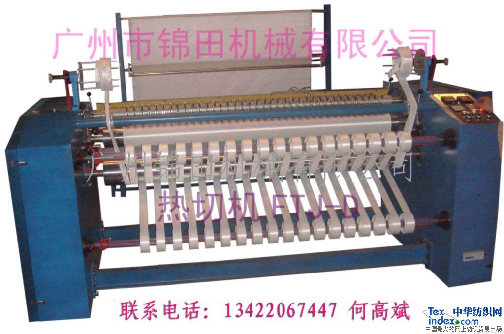 熱切機:用途與特點: 本公司生產的熱切分條機(熱切捆條機、熱切機、電熱分條機)操作簡單機,是多刀型排刀分切,是在以前的機型上進行全面的技術改造而誕生的新一代機型,在功能上及易操控性都得到了極大的提高。 本機采用變頻調速系統代替過去的電磁調速,使送料過程更加平穩均勻,可根據不同產品調節合適分切速度,而且更節能。采用獨立的光電自動對邊儀,使分切過程平滑順暢,布料更整齊,大幅減少邊料的損耗。經過特殊處理的刀床,有效的防止刀床滾輪過熱而變形,可以連續長時間不間斷工作,極大地提高了工作效率和機械的耐用性以及它的使用壽命。新增加的自動進、退刀功能,切完布料后自動停機等功能,大大提高了操作性。