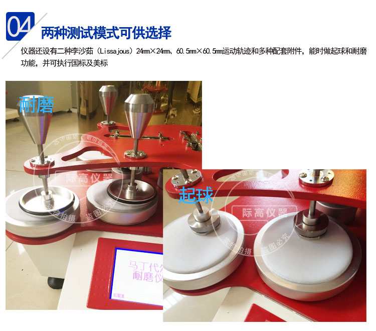2、多種測試模式可供選擇,同時做起球和耐磨功能,并可執(zhí)行國標(biāo)及美標(biāo)