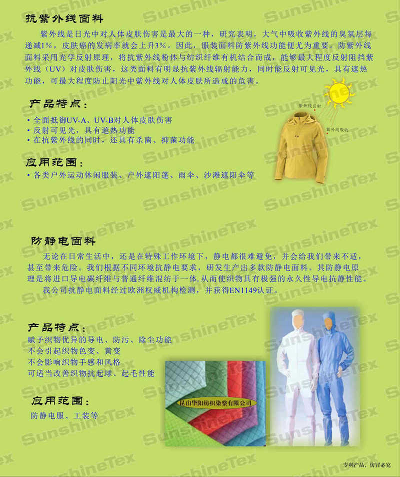 抗紫外線面料和防靜電面料