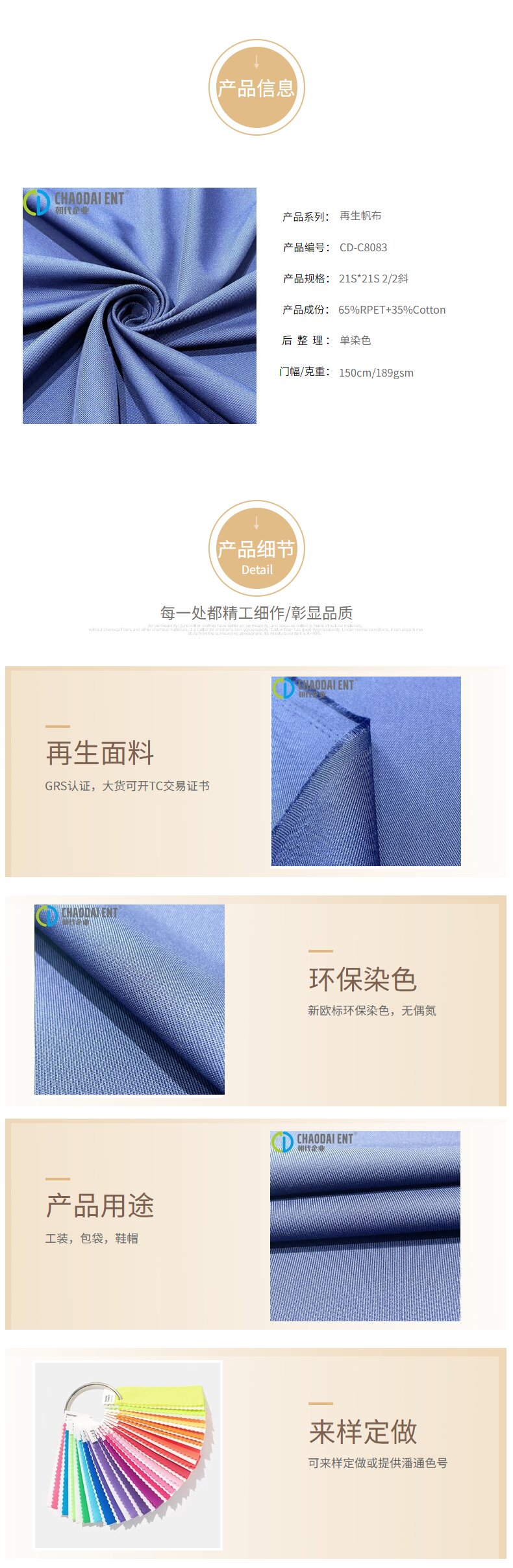 產品關鍵字:再生面料,斜紋帆布面料,工裝面料,包袋面料,鞋帽面料